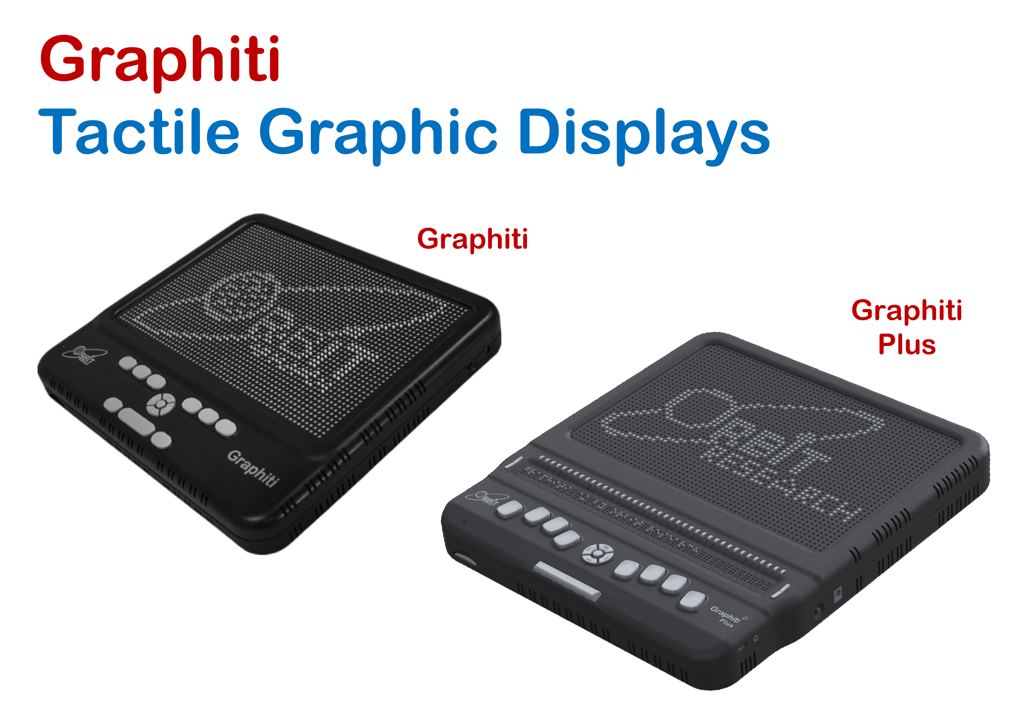 Graphiti® is an Interactive Tactile Graphics Display based on revolutionary Tactuator™ technology from Orbit Research. It represents a breakthrough in non-visual access to any form of graphical information such as charts, drawings, flowcharts, floorplans, images and photographs, through an array of moving pins.